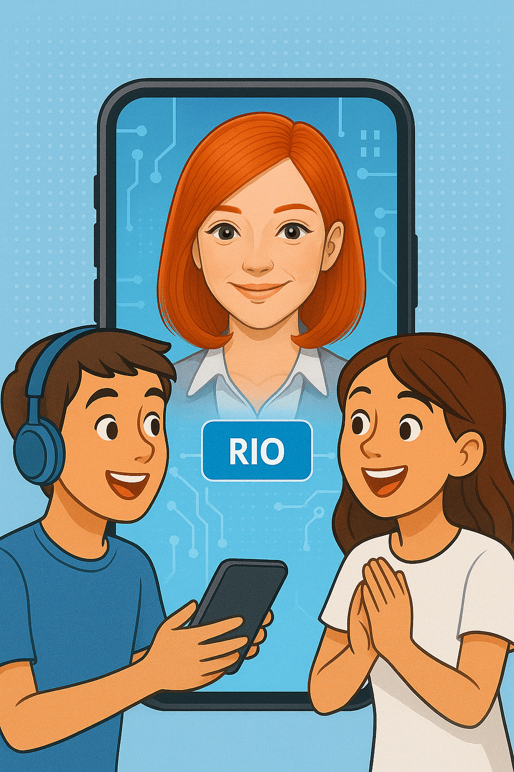 R.I.O. é a primeira agente de IA criada para conversar com você sobre o que você ama — e destravar a sua fala.